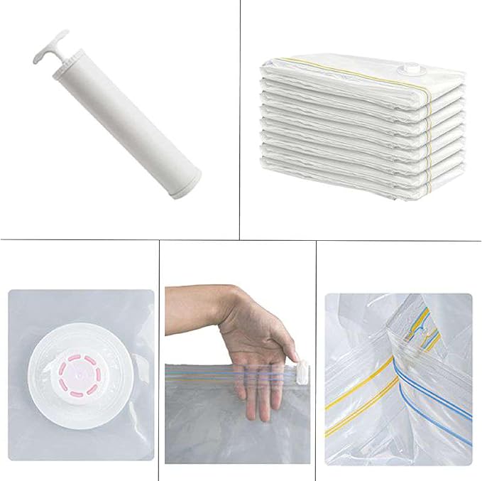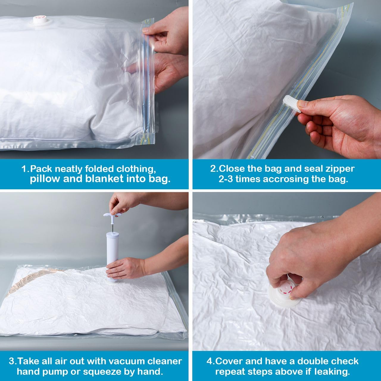 Airtight Valve, Durable Reusable Compression Bags for Storage & Travel with Travel Hand Pump