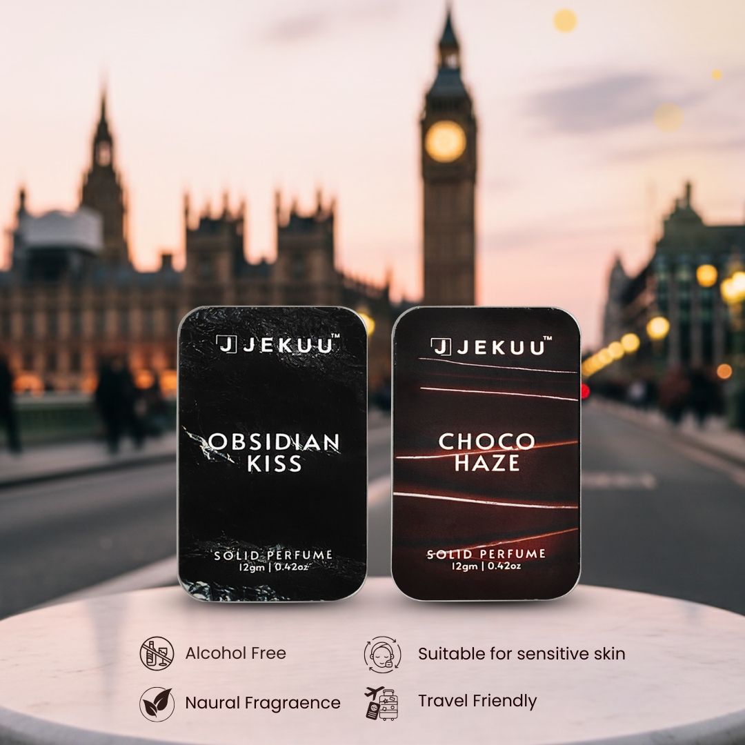 Solid Perfume Combo | Obsidian Kiss & Choco Haze | 24 g Alcohol Free, Long-Lasting, Travel friendly
