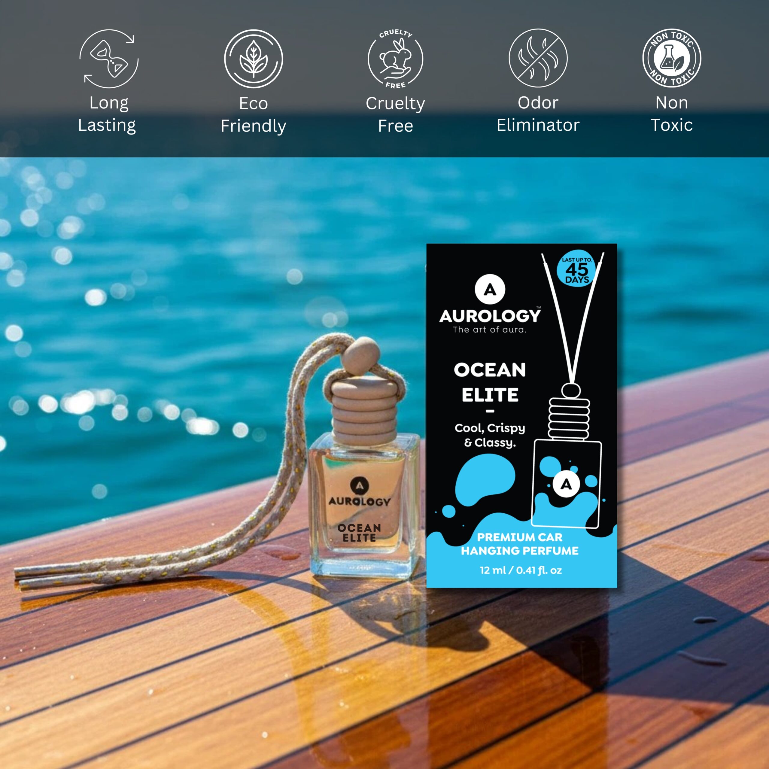 - Long-Lasting Fragrance up to 45 Days Experience a refreshing ocean aroma that keeps your car smelling fresh and inviting for up to 45 days with premium natural essential oils.