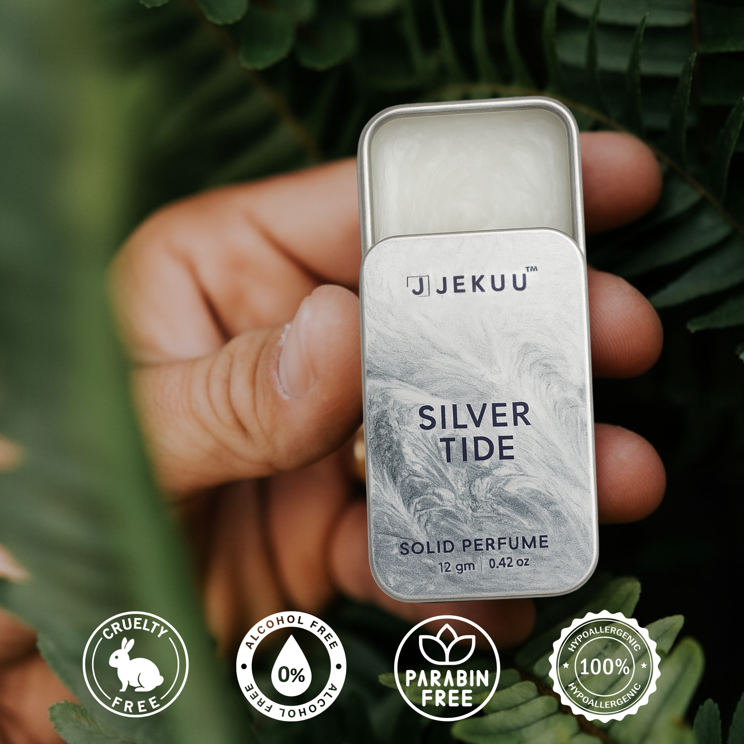 Silver Tide is more than a fragrance; it’s a reset button for your senses. Inspired by the raw power of the ocean and the crispness of mountain air, this solid perfume is designed for the spirited and the free. Imagine standing on a cliffside, feeling the spray of the silver tide against your face cool, salty, and endlessly refreshing. That is the feeling we have captured in this tin. It is the perfect alternative to overpowering colognes, offering a subtle yet distinct aura of cleanliness.