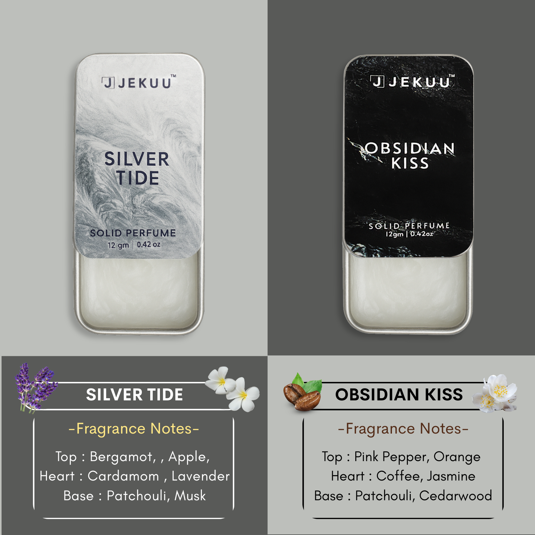 Set of 2 | Silver Tide & Obsidian Kiss | Solid Perfume Combo