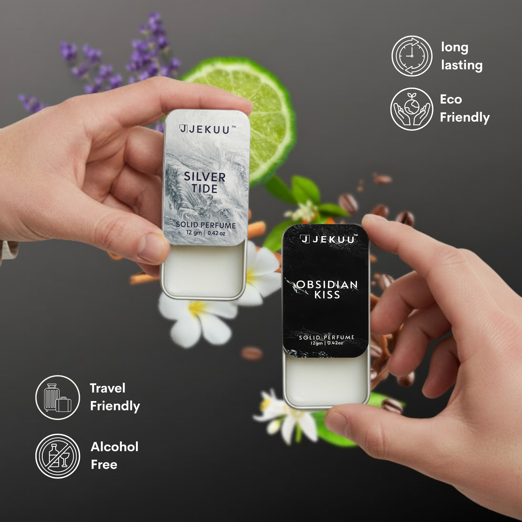 - ALCOHOL-FREE & SKIN-FRIENDLY: Unlike spray perfumes that evaporate quickly and dry out your skin, JEKUU solid perfumes are crafted with a moisturizing wax base. They are alcohol-free, making them gentle on sensitive skin while locking in the scent longer.