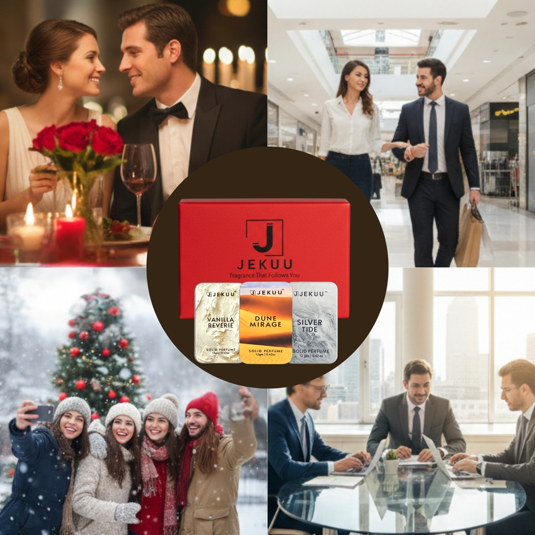 Discover the perfect blend of luxury and convenience with the JEKUU Solid Perfume Combo for Unisex. This premium set includes three distinct and sophisticated scents—Vanilla Reverie, Dune Mirage, and Silver Tide—crafted to offer a long-lasting, rich fragrance experience for both men and women. With a non-greasy, eco-friendly wax formula, these solid colognes are not only practical and travel-friendly but also deliver a fresh, premium scent that will stay with you up to 12 hours.