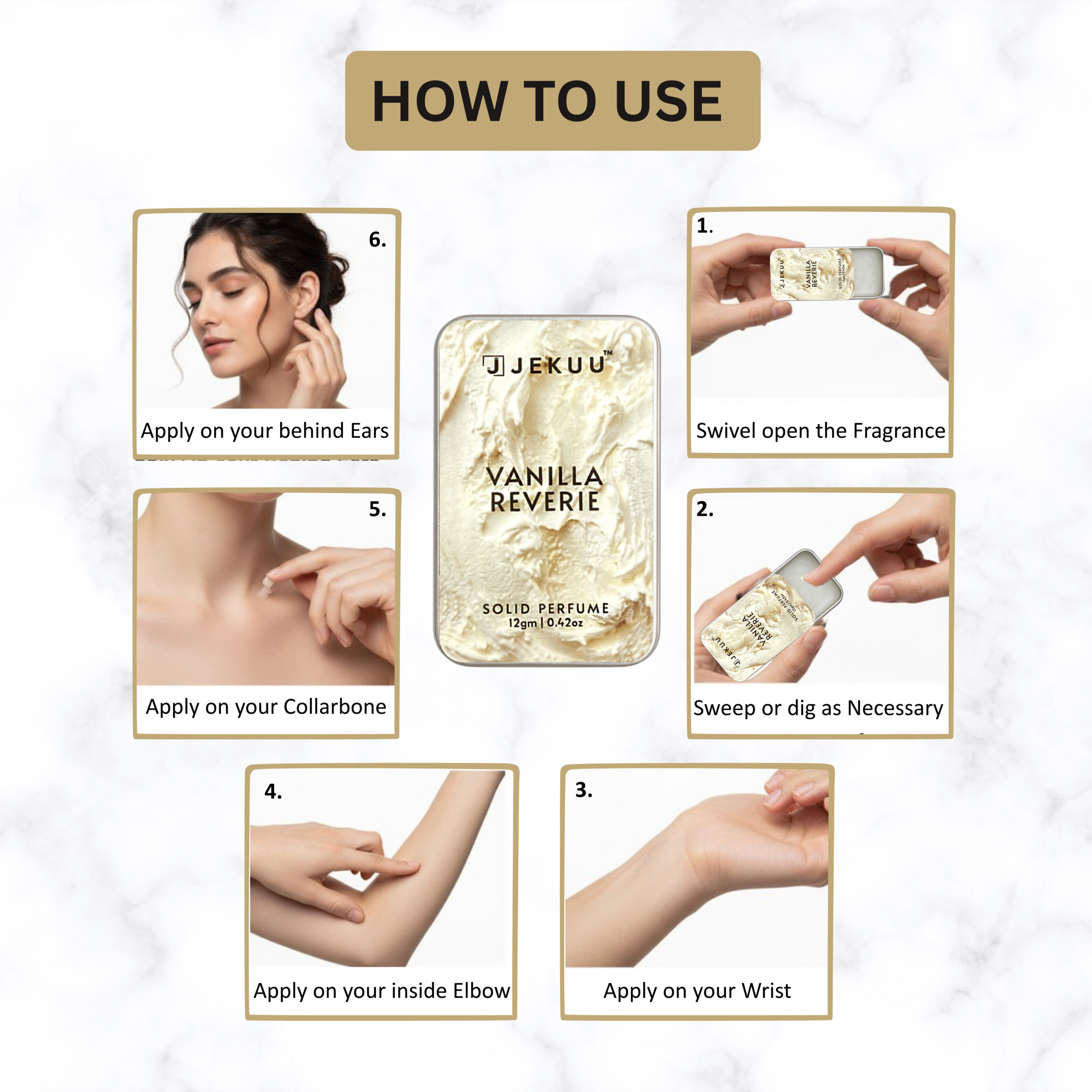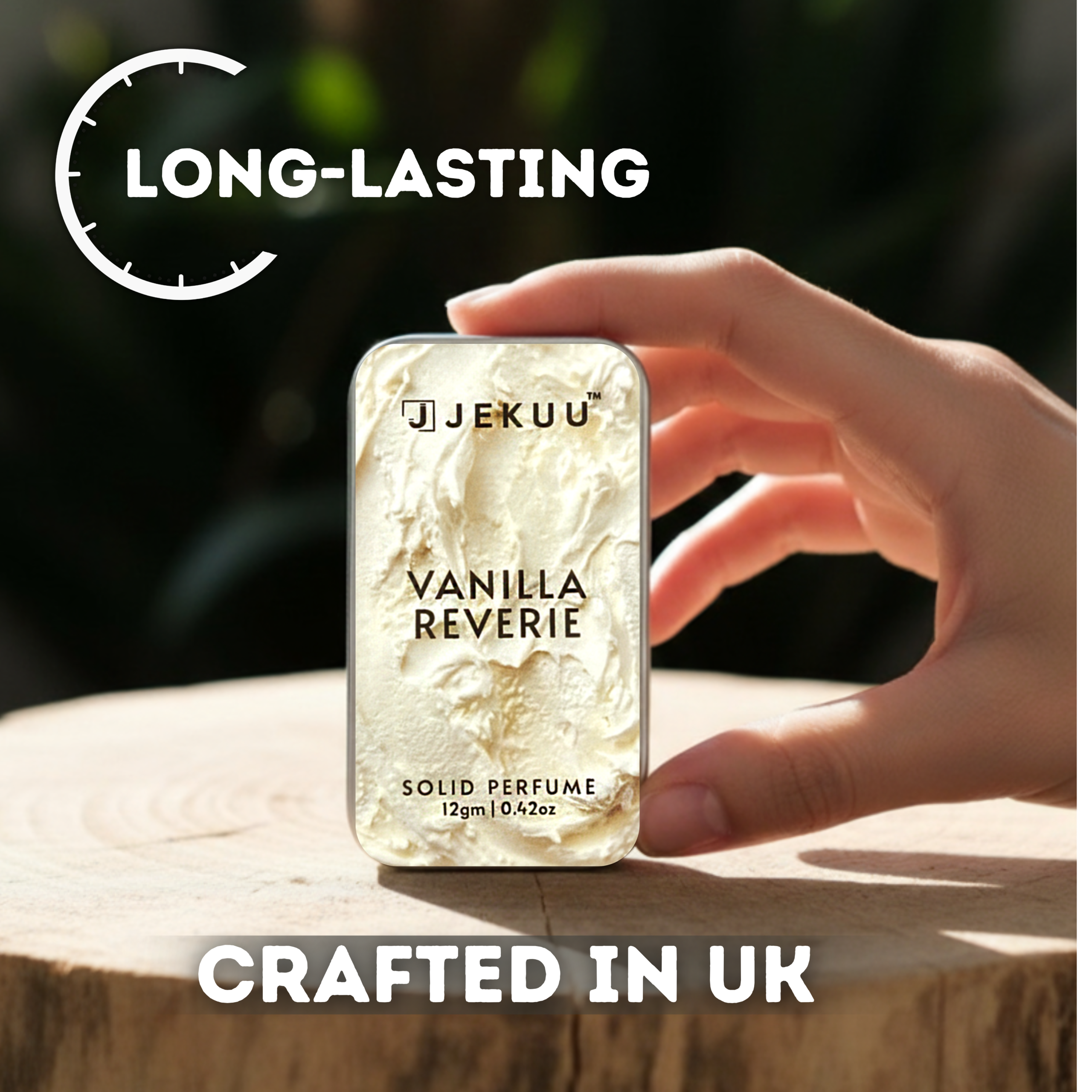 A Scoop of Pure Comfort for Your Senses. Introducing JEKUU Vanilla Reverie, a solid perfume that captures the essence of a sweet daydream. Inspired by the visual of whipped vanilla cream and soft clouds, this fragrance is designed to bring a sense of calm and warmth to your chaotic day. Why choose a solid perfume? It is intimate, tactile, and purposeful. Vanilla Reverie isn’t just a scent; it is a ritual. Whether you are rushing to a meeting or settling in for a cozy evening, a quick swipe of this balm transports you to a bakery filled with the aroma of warm sugar and fresh vanilla pods.
